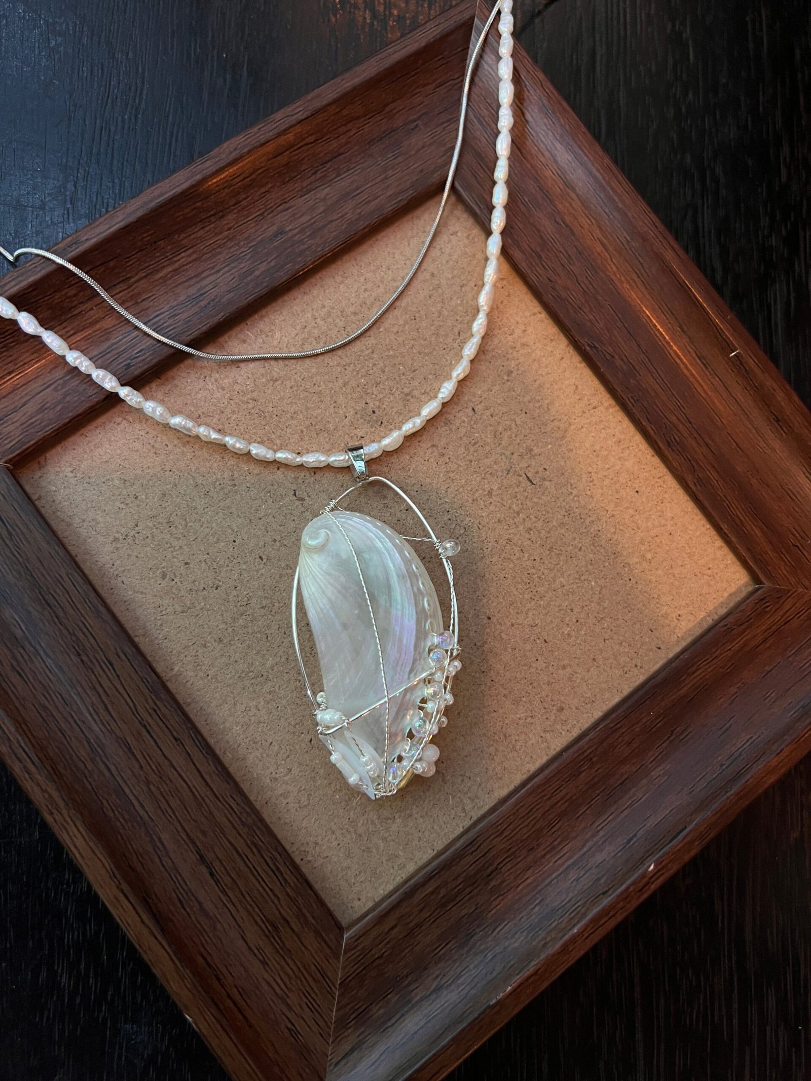 Mermaid’s Whisper,Uniquely Aesthetic Niche Handmade,Shell Necklace Pendant,Natural Pearl